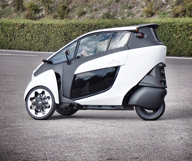 Blending a car, motorcycle and buggy, the Toyota iRoad is a highly viable, not to mention downright fascinating, solution to traveling congested urban streets. Best of all, it even seats two, yet is only 33.5 inches wide, 56.9 high and 92.5 inches long. The enclosed body offers not only a degree of safety, but protection from the elements while also eliminating the need to wear a helmet. So coiffured hair is safe.