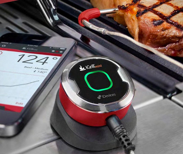 Keep track of that barbequed fillet from the comfort of your garden chair, beer in hand, thanks to iGrill Mini, a Bluetooth smart grilling thermometer and app for your iPhone. It sports a 150-foot range, 150-hour battery life, magnetic mounting and a couple of viewing angle positions to cater for your catering.
